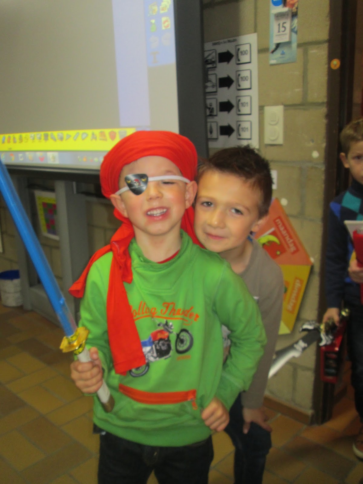 Vandaag, dinsdag, kwamen er zelfs twee piraten de klas binnen: piraat Arno en piraat Simon. Heel fijn om te zien dat de leerlingen zo in het thema opgaan.